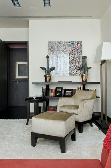 Located in the centre of Moscow, this private apartment was conceived as a soulful oasis of tranquillity set amongst the city’s urban life. The idea was to create a precious and warm environment to feel comfortable in a megapolis. Starting from the dramatic, eye-catching entrance, the colours become lighter as you move towards the private rooms that are decorated with a soft twist of materials giving the overall impression of coziness. The colour palette was created to add a significant contrast with the natural texture of wood.